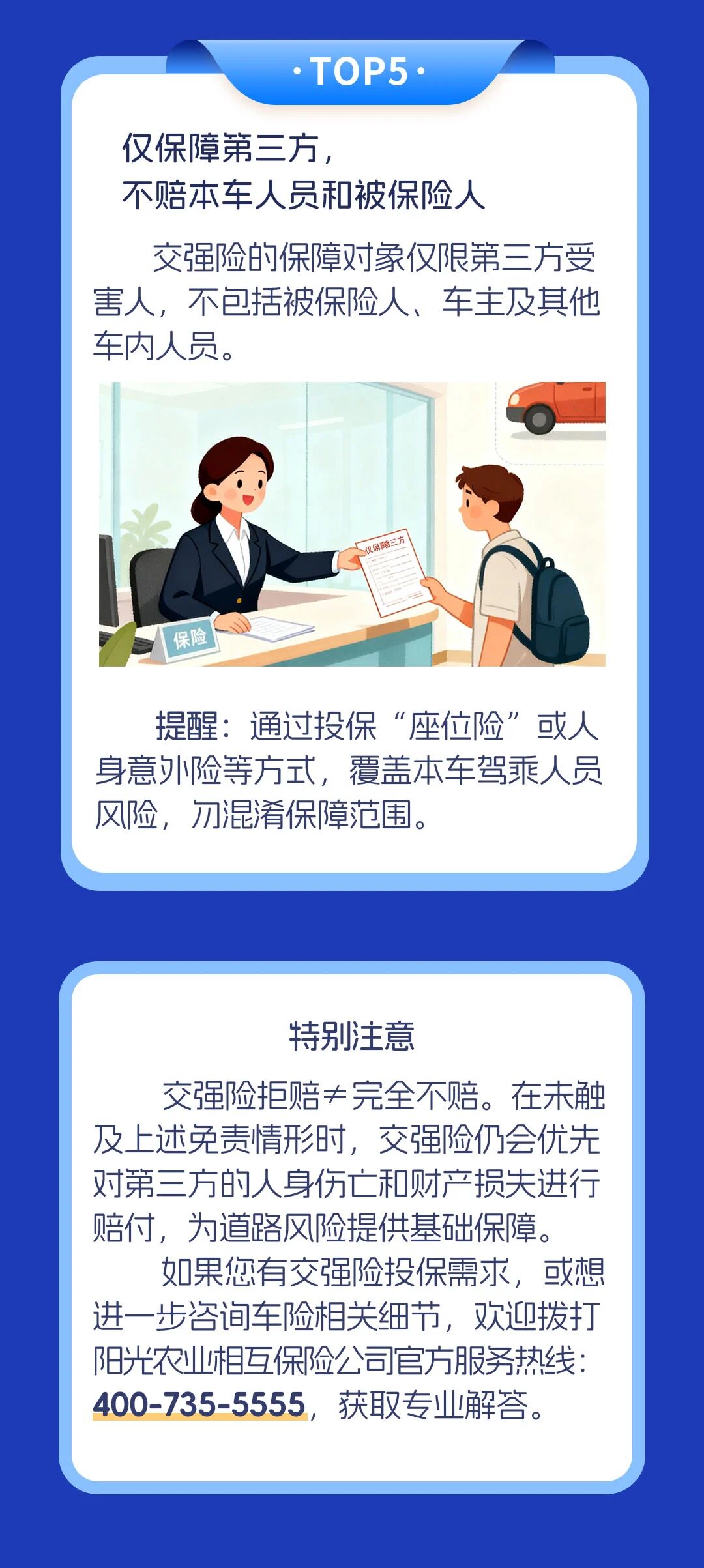 【阳光农专题】保险小课堂 | 交强险拒赔TOP5情形:这些情况 一分不赔