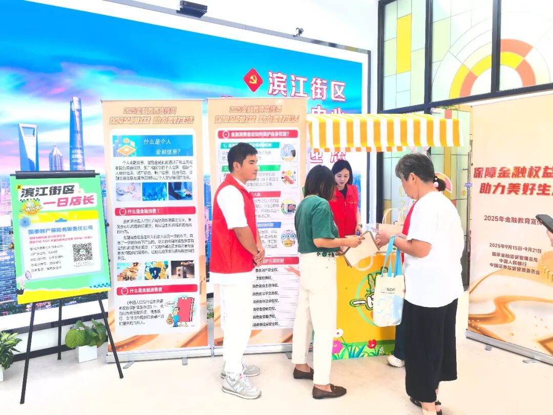 活动现场,国泰产险精心布设的系列主题易拉宝成为传递金融知识的 “可视化课堂”,“消费者如何保障自身权益”“什么是金融消费者”“金融消费风险防范”“识别非法金融广告” 四大核心主题清晰醒目。